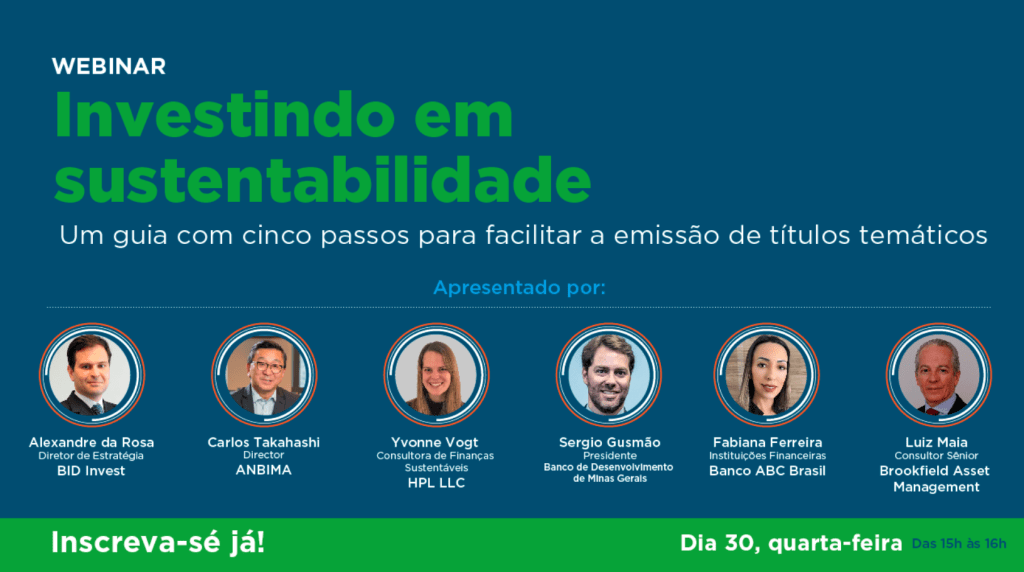 HPL’s Consultant, Yvonne Vogt, participated as an expert in a Webinar hosted by IDB Invest and ANBIMA on the main steps to structure thematic bonds and sharing experiences on sustainability in the brazilian capital markets. The experts in the panel included Alexandre da Rosa, Chief Strategy Officer at IDB Invest, Carlos Takahashi, Director at ANBIMA, Sergio Gusmão, President at Development BAnk of Minas Gerais (BDMG), Fabiana Silva, Financial Institutions at Banco ABC Brazil, and Luiz Maia, Senior Consultant at Brookfield Asset Management. The event was moderated by Gabriel Azevedo, Chief Social, Environmental and Governance Division at IDB Invest and Marcia Groszman Faria, Lead Investment Officer for Brazilian Financial Institutions at IDB Invest.