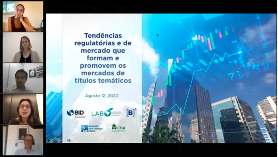 Our Associate Yvonne Vogt participated alongside Fabio Zenaro, from the Brazilian Stock Exchange (B3), Maria Netto, from the IDB, and Sandro Damásio from Eletrobras in a webinar organized by the Inter-American Development Bank, CVM (Comissão de Valores Mobiliários), United Nations Sustainable Stock Exchanges Initiative (SSE) and Laboratório de Inovação Financeira.